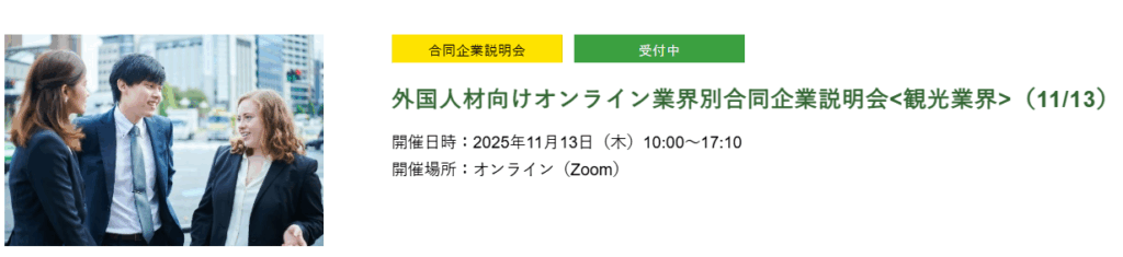 今日は外国人向け観光業界のオンライン企業説明会のご案内です。
